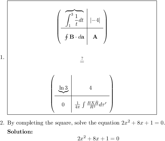 Our Community-database contains thousands of handcrafted LaTeX-snippets. You can search them by title, description or tags